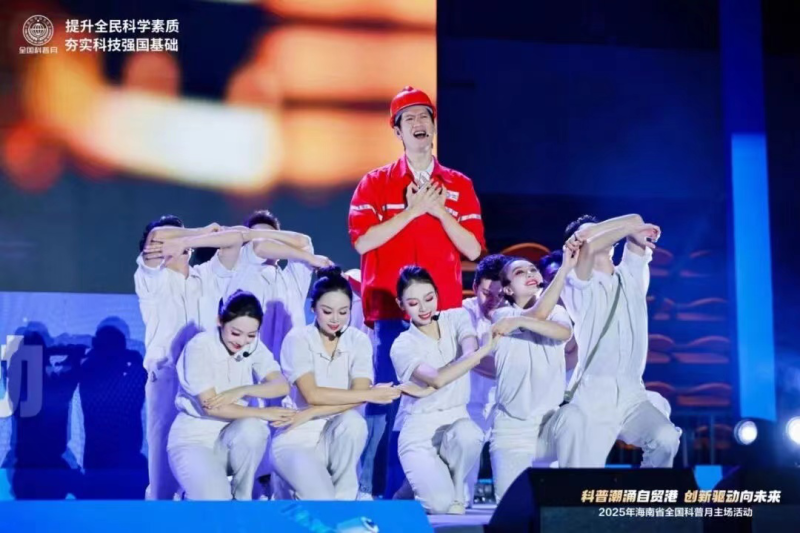 启动仪式上,充满“硬核”科技感的激光照射在舞台大屏幕上,伴随着激昂有力的配乐,以流光四溢的铭刻动画回顾近年来海南省重大科普活动的发展历程。体现南繁精神的舞台剧《热土当歌》、反映大学生科普行动的音诗画《科普的翅膀》以及展现青少年科学探索精神的歌曲《未来作答》等原创科学文化节目接连上演,描绘了科普事业助力创新发展、点亮大众科学梦想的生动图景。