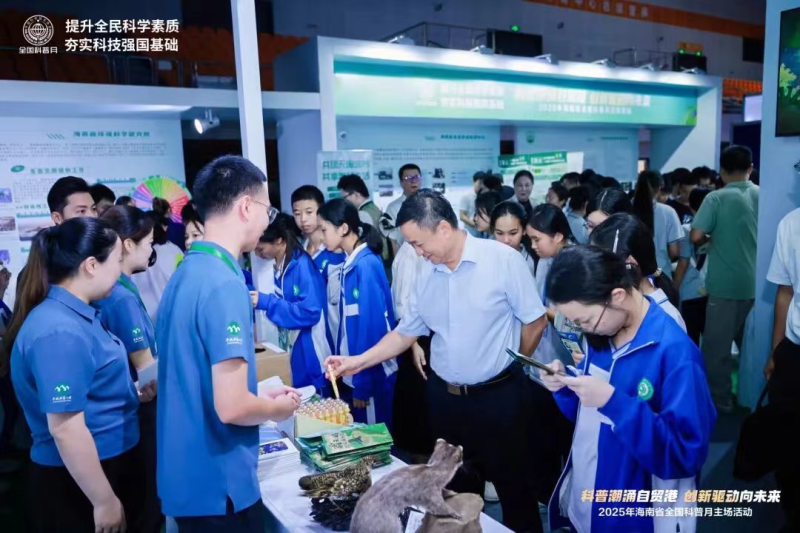 据悉,今年9月是首个全国科普月,海南以“科普潮涌自贸港,创新驱动向未来”为主题,在儋州市体育中心举办为期三天的主场活动。期间,活动在位于儋州市体育馆的主舞台区域设置“新质生产力”科技创新成果展、非遗文化等展区,组织近100家单位带来超1000件展品,通过实物展陈、全息投影、互动装置等多元形式,展示南繁育种、深海科技、航天航空、生态环保、数字经济、气象科学等领域的科技创新成果。