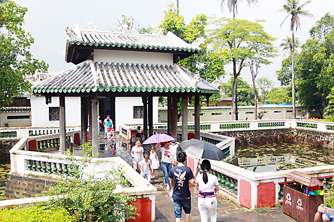 当天上午的一场雨给享有“天南名胜”之称的东坡书院增加了一丝妩媚。一走进书院,蓊郁的草木苍翠欲滴,很是养眼。许多游客掏出数码相机、智能手机,为同游的伙伴拍摄这些美丽的镜头。