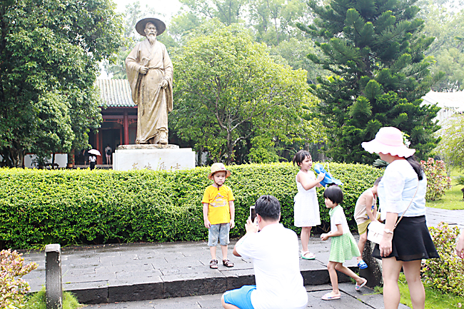 在载酒堂前拍照的游客林先生告诉记者,他是湖北孝感人,大学毕业后到三亚的一家房地产公司工作,已经快十年了,现已在三亚成了家,小孩也快两周岁了。中秋节小长假,他母亲从老家来三亚过节,于是他就与全家一起,到儋州来走走,放松一下心情。“中秋节,对于我们这些在外地工作的人来说是一次难得的放松时间,加上东坡书院重新修缮,添了不少‘内容’,因此,就顺便带着家人一块过来游玩。”林先生说。