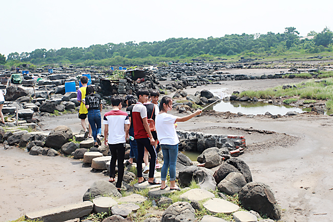 记者赶到千年古盐田的时候,已经是中午十一点,发现游客不是很多。据附近一个卖老盐巴的陈阿姨介绍,最近天气不好,老刮风下雨,所以这段时间盐田没有生产,因而这几天前来游玩的客人跟平常一样,并无明显增多。