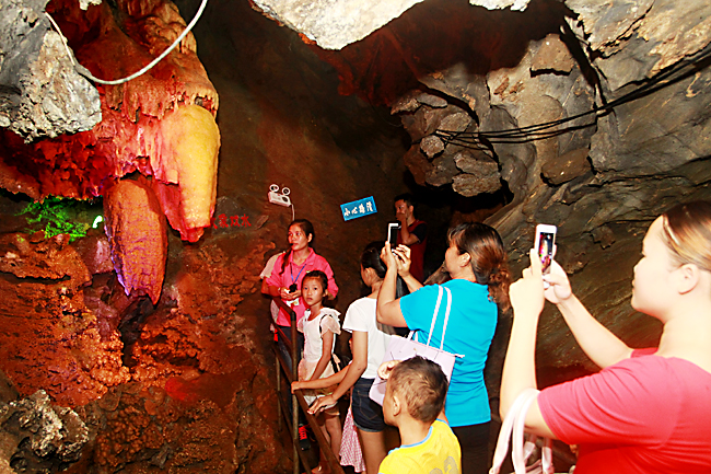 游客在石花水洞游览。