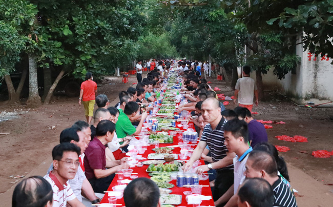村里的父老乡亲摆长桌宴欢聚一堂共享欢乐。记者 黎有科 摄