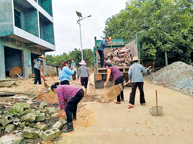 兰洋镇降来村村民在开展人居环境卫生整治。 儋州融媒全媒体记者 罗鑫 摄