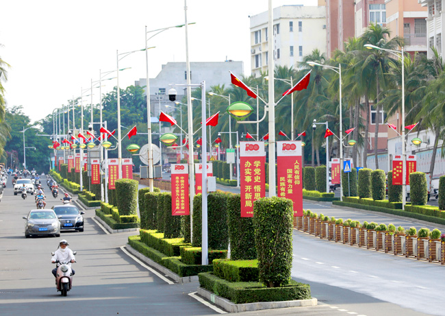此次国庆节花卉摆放已于29日全部完成。接下来,园林工人对道路旁的灌木进行修枝整形、清理杂草等工作,为市民营造良好的出行环境。(儋州融媒全媒体记者羊文彪 编辑王竞)