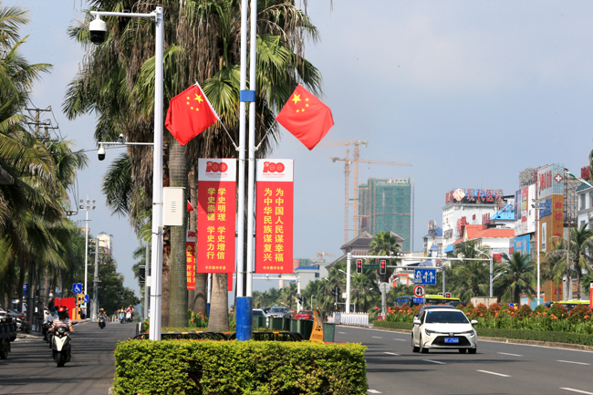 儋州市融媒体中心消息 迎宾大道、中兴大街、文化路、云月路……近日,那大城区主要街道悬挂国旗迎国庆,营造出喜庆、祥和、浓厚的节日氛围。一面面鲜艳的国旗,一抹抹靓丽的“中国红”,是对祖国深情的祝福和告白。