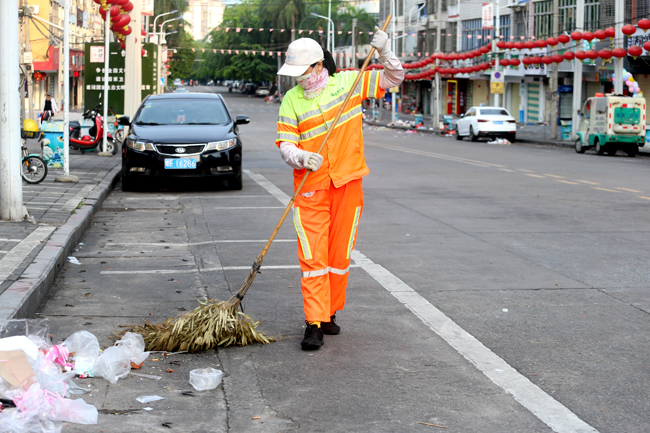 “每到节假日,我们就特别忙,把环境卫生整理干净,我们会感到很开心,希望市民出来游玩时能够心情舒畅一点。”解放清扫保洁组负责人麦秀梅介绍,凌晨五点,环卫工人就开始一天的工作,对沿街垃圾做到随产随清,确保市民出行环境卫生干净整洁。