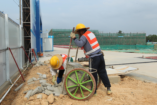 项目工地人员在施工。 儋州融媒全媒体记者 何万常 摄