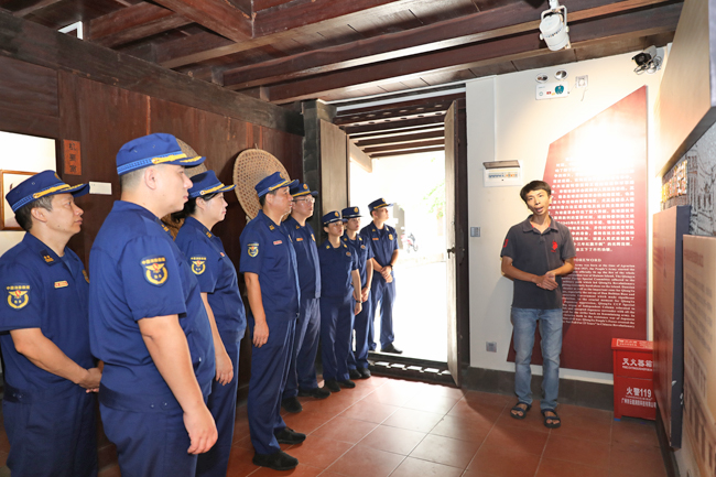 在中共琼崖特委、琼崖纵队总部旧址内,全体人员跟随着讲解员,认真聆听感受先辈们在艰苦条件下勇敢无畏的革命精神,从中汲取理想信念力量,传承红色基因、赓续红色血脉,激发干事创业热情,推动消防救援工作再上新台阶。