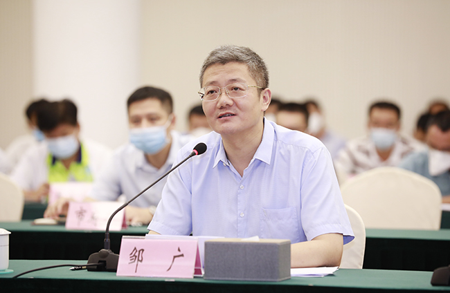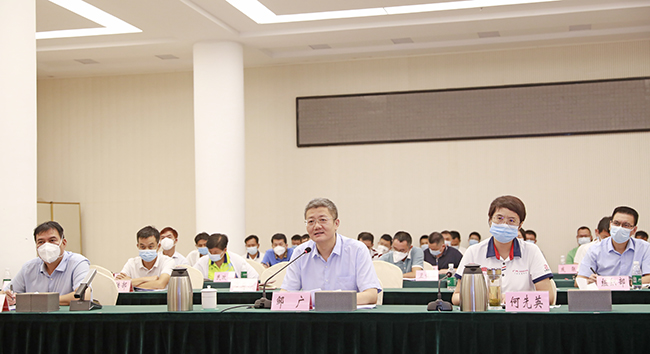 9月25日,在省乡村振兴大比拼活动再动员再部署视频培训会议结束后,市委副书记、市长,兼洋浦经济开发区工委副书记、管委会主任邹广立即召开全市会议对乡村振兴大比拼活动进行再动员再部署。图为邹广在会上讲话。