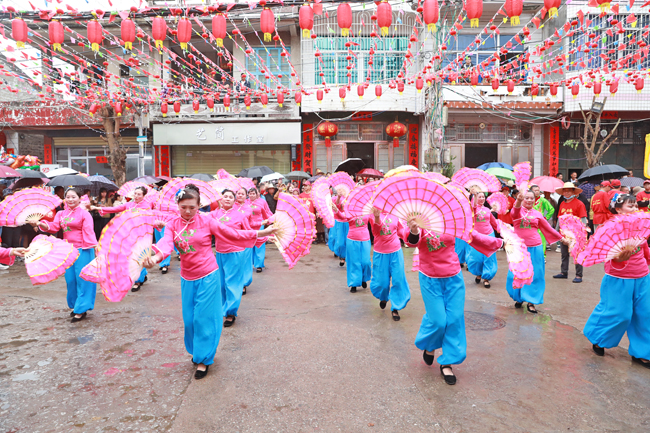 当天,记者在长长的游街表演队伍中看到,最吸引人们眼球的要数舞龙队,数条长龙盘旋跳跃,时而朝人群颔首,时而调皮地冲向人群。另外,还有富有节奏感的调声表演、充满喜庆的腰鼓响个不停,以及身穿鲜艳服装、脸上涂着胭脂的大妈们踩着高跷,一路唱着欢快的调声歌舞。具有特色的“花木兰从军”“牛郎织女”“梁祝化蝶”等角色,个个扮相生动,霓裳飘飘、盔甲闪闪,引来大批居民游客前来观看,沉醉其中,流连忘返。