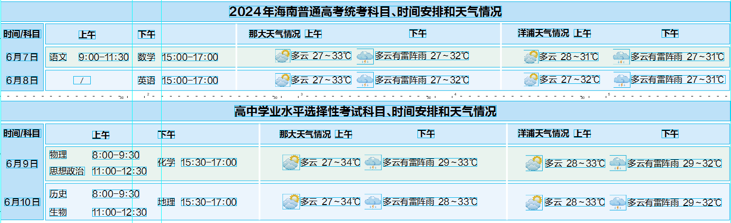 儋州市融媒体中心消息 2024年海南高考时间是6月7日至10日。其中,统考科目时间安排在6月7日至8日,考试科目为语文、数学、英语;6月9日至10日则是选择性科目考试时间,考试科目为物理、思想政治、化学、历史、生物、地理。