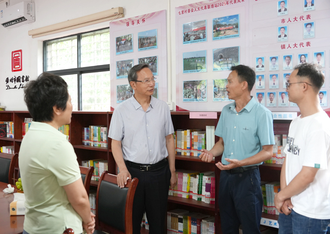 在中和镇七里村人大代表联络站,李军实地走访查看联络站建设及运行情况,听取站点负责人关于代表联系群众、意见收集办理、全过程人民民主基层实践等工作汇报,与基层代表和群众深入交流,重点了解新修订的代表法学习贯彻实施情况,征求对加强和改进人大工作的意见建议。