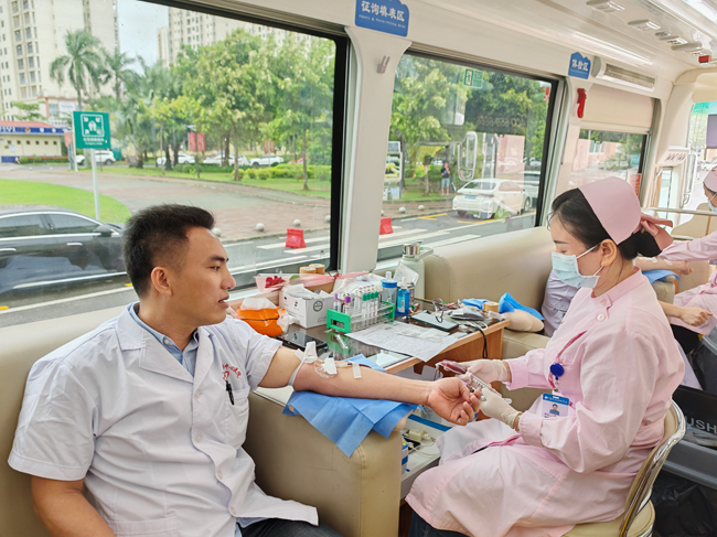 无偿献血现场。 儋州融媒全媒体记者 符武月 摄