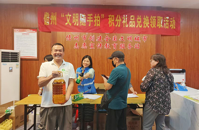 儋州市融媒体中心消息 9月25日,市“一创两建”工作指挥部在市创建全国文明城市志愿宣传教育服务站开展“文明随手拍”小程序礼品兑换活动。