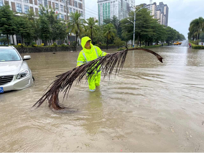 儋州市融媒体中心消息 受今年第21号台风“麦德姆”影响,10月5日,我市出现大风强降雨天气。市公安局交通管理支队闻令而动、提前部署、全力以赴,坚守防御台风一线,全力保障国庆节、中秋节期间的道路安全畅通。
