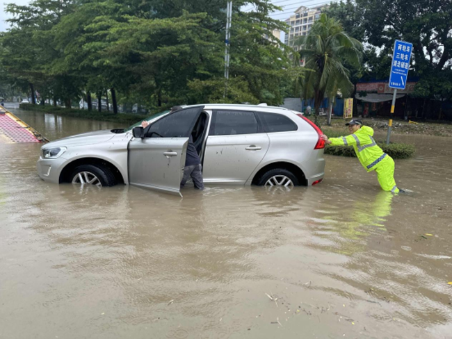 当日10时许,那大城区中兴大街受连续降雨影响,部分路段积水严重,交管支队巡逻警力在积水路段设置交通安全警示提示标志牌,及时清理下水道落叶、淤泥,及时救助抛锚的车辆,帮助车主安全脱险。(儋州融媒全媒体记者王家隆 文/图 编辑符灵基 校对张美丽 审核王诗波)