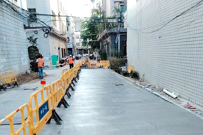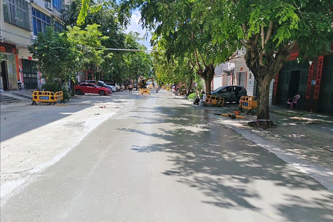 文化中路三街混凝土路面恢复。 儋州融媒全媒体记者牛伟 摄