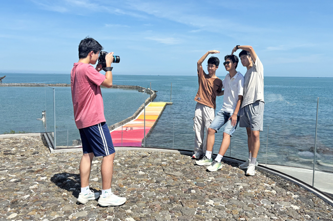 游客在海南神冲滨海旅游度假区打卡拍照。 儋州融媒全媒体记者 何爱子 摄