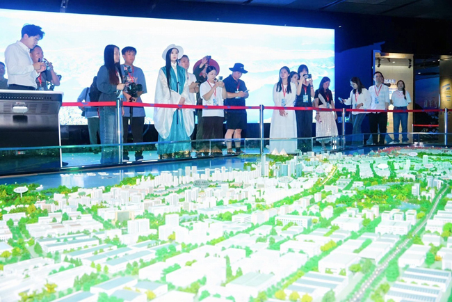 10月18日,采风团首站走进洋浦展示馆,刚踏入馆内,热烈的氛围扑面而来。来自海南各地的网络名人、自媒体创作者认真聆听讲解员介绍儋洋的产业布局、自贸港建设以来的经济增长数据、重点项目进展以及自贸港样板间成就等内容。最受期待的莫过于飞行影院体验环节,大家有序落座后,巨幕上瞬间铺展开环新英湾的航拍全景,从繁忙的洋浦港码头、整齐排列的标准厂房,到绿意盎然的生态廊道、蜿蜒绵长的海岸线,画面随着“飞行轨迹”不断切换。高空俯瞰的沉浸式体验让大家目不暇接,纷纷拿起手中的设备,用镜头定格每一处景象。