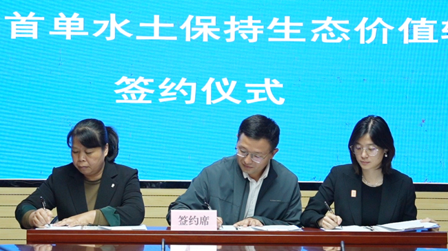 仪式上,市水务局、南丰镇与嘉禾农庄共同签署了三方合作协议。本次签约围绕油文小流域提质增效项目展开,通过实施100亩“经果林”物质生态产品(如百香果)的价值转化,将实际收益反哺于当地用于水土流失治理,基础设施维护等,实现生态治理、产品生态化与生态产品化的有机统一,成功落地全省首单水土保持生态价值交易。