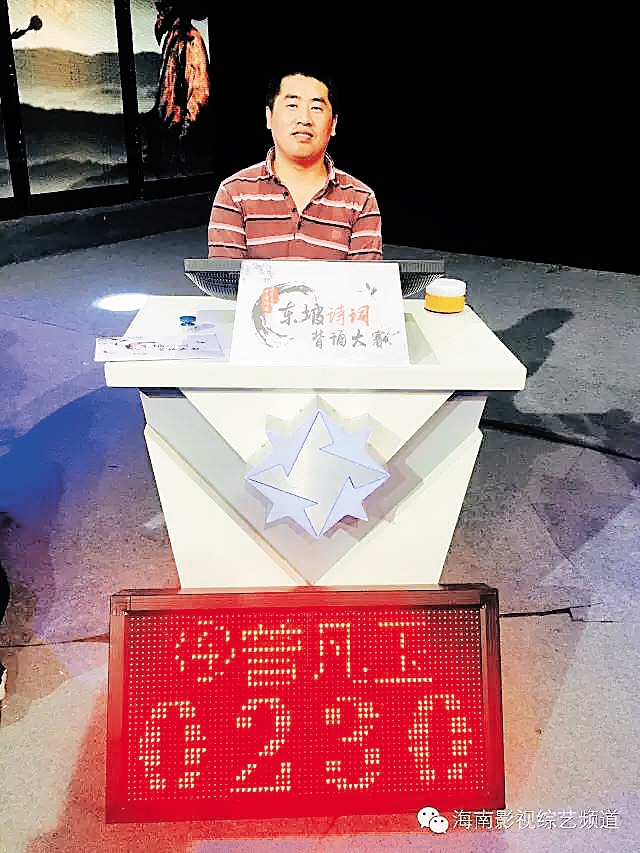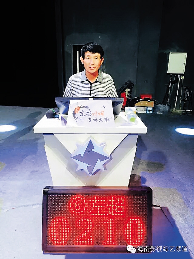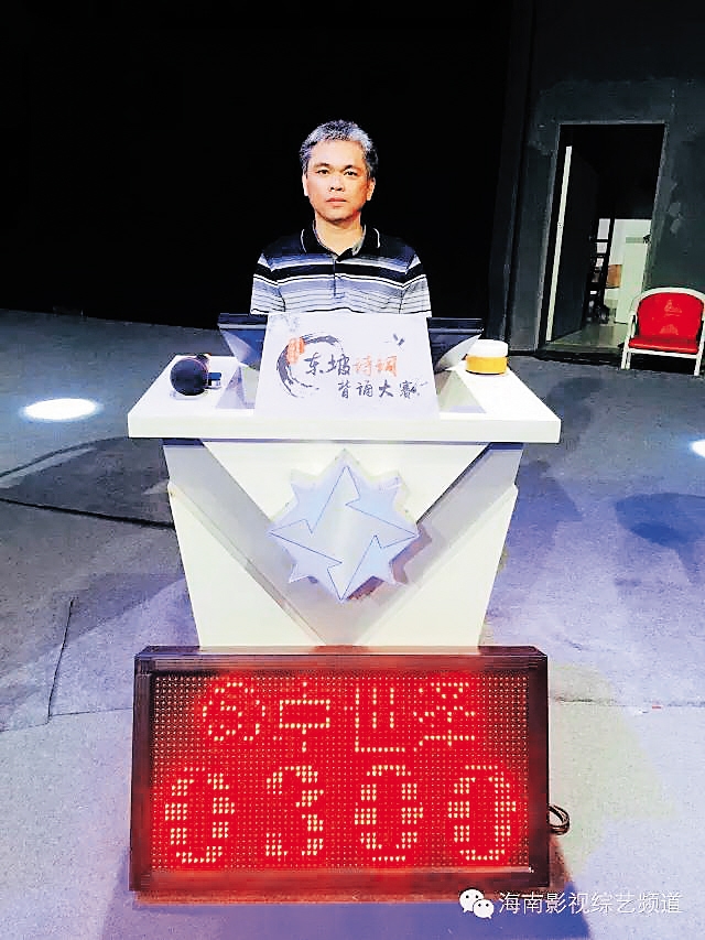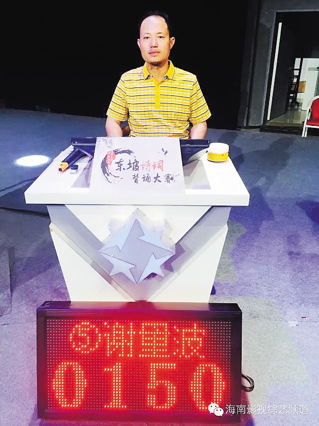 谢量波 在“中国海南海花岛杯——东坡诗词背诵大赛”的复赛第二场中晋级总决赛的谢量波,是海南儋州一位地道的农民。他家就在儋州东坡书院附近,从小耳濡目染,受到东坡诗词的熏陶,平常就喜欢诵读东坡诗词。 本次大赛海选中,谢量波3个多小时不停准确背出784首东坡诗词,获得海选赛第一名。谢量波说,平常做农活的时候,他经常默念着东坡先生的诗词。东坡先生的《迁居之夕,闻邻舍儿诵书,欣然而作》是他最喜欢的东坡诗词,其中“荆榛短墙缺,灯火破屋深。”所展现的积极乐观、热爱生活的精神一直鼓舞着他。 抱着积极向上乐观的生活态度,谢量波说,通过参与东坡诗词背诵大赛,学习东坡先生的诗词文化,领悟更深层意义的东坡精神,是他参赛的最大收获。