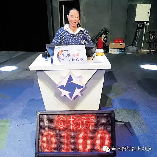 吴梅霞 在“中国海南海花岛杯——东坡诗词背诵大赛”第一轮复赛即进入总决赛的吴梅霞,是儋州的一名公务员。因为工作的原因,她认为自己与苏东坡先生在海南儋州的生活经历有相同的轨迹,所以她爱上了东坡先生的诗词。 工作之余,背诵东坡诗词是吴梅霞颇为热衷的一件事情。从最初的15首,到后来的25首渐渐的到本次比赛海选中能背诵723首东坡诗词。 吴梅霞说,东坡先生的《琴诗》是她在众多诗词中的最爱,短短一句“若言声在指头上,何不于君指上听?”深深的打动了她的心。不论是生活的不快或是工作的不顺,她都会用东坡的诗词来宽慰自己。 吴梅霞说,东坡先生的诗词给了她无限力量,一路能够挺进决赛,正是因为东坡精神不断的鼓舞。