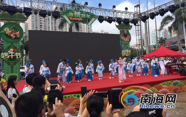 “2017中国·海南名粽展销会”现场,儿童端午谣演出。南海网记者徐静涵 摄