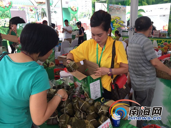 “2017中国·海南名粽展销会”现场,展商忙着帮市民挑选不同口味的粽子。南海网记者徐静涵 摄