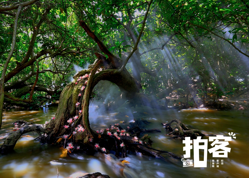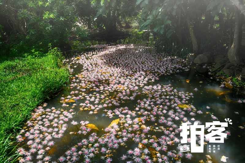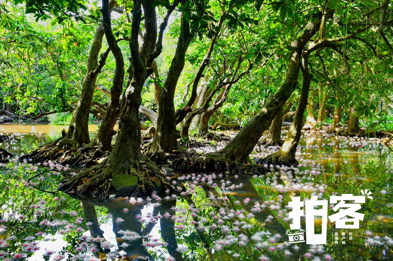 儋州市中和镇七里村是一个有着1300年历史的古老村庄,村中延绵数里的玉蕊花,又到了一年一度的盛开时节。玉蕊是我国唐代中叶盛名的传统名花,而令人惊奇的是,在儋州七里村的河道边,遍布着数不清的百年玉蕊古树林,每年5月到9月,粉红色的花朵沿河盛开,香飘数里。玉蕊花是夜晚开放,早晨太阳出来后,便落英缤纷,似天上的星星飘落在地上和河道里,形成美丽的花河,成为七里村一道靓丽的风景线。