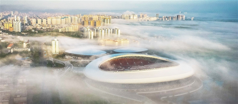 航拍儋州市体育中心“一场两馆”。吴文生 摄