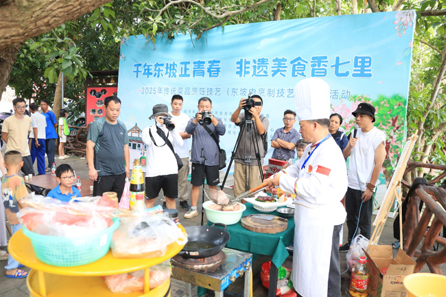 儋州市融媒体中心消息 10月7日至8日,“千年东坡正青春 非遗美食香七里”——2025年传统菜品烹饪技艺(东坡肉烹制技艺)展示活动在中和镇七里村举办。活动以沉浸式研学为主要形式,结合美食、艺术与青年文化,推动东坡文化与年轻群体的交流互动,展现非遗技艺的当代传承。