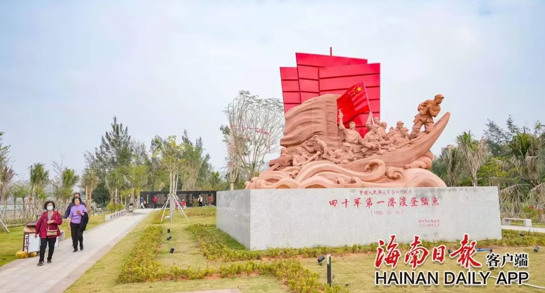 据了解,中国人民解放军第四野战军四十军第一潜渡登陆点纪念园于去年7月12日开工,9月20日竣工,为儋州市环新英湾新城增添一个红色“打卡地”。